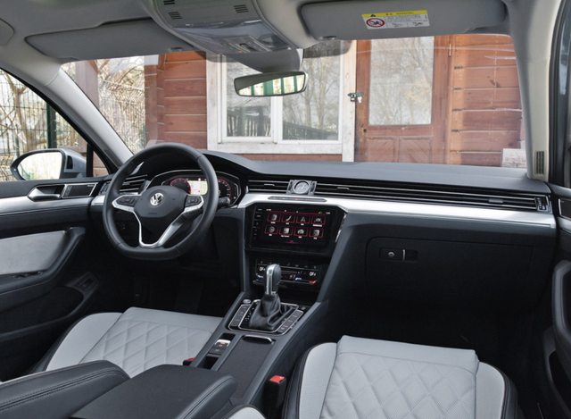 来到车内似乎没有太多可以讲的,还是大众的家族式设计风格,万年不变,看起来非常沉稳,空调出风口非常细长,从左一直延伸到右,采用了贯穿式设计,使整个驾驶舱看起来更加的宽,中控大屏样式设计的非常的普通,没有太多特点和科技感,整个车内的用量一般般,做工也很一般,色彩的搭配比较稳重,总体来说还行,符合普通家用车定位。